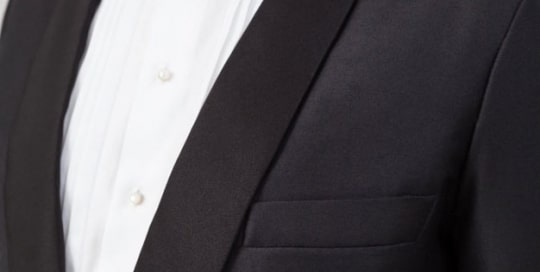Fabric–covered sleeve buttons of a bespoke dinner jacket