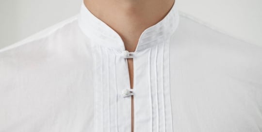 Oriental inspired bespoke shirt with a pin-tucking stitch
