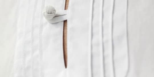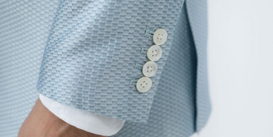 Sleeve buttons on a silk–piqué jacket