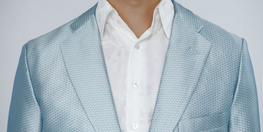 Silk–piqué jacket combined with a silk–jacquard shirt