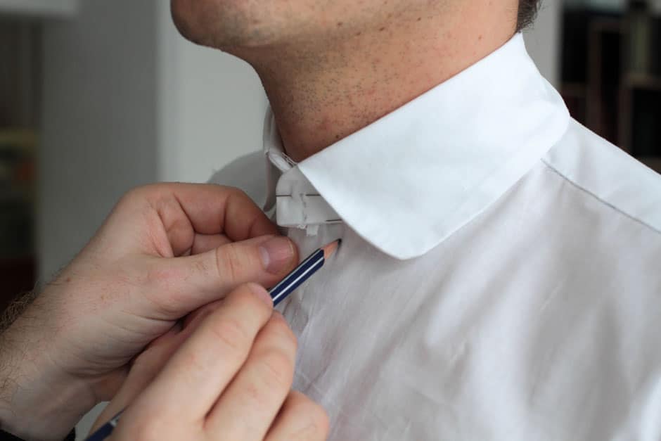 Jede Anfertigung beginnt mit einem ausführlichen Beratungsgespräch. Wir möchten Sie näher kennenlernen und Ihre Wünsche und Anforderungen an Ihr neues Maßhemd genau verstehen. Bei der Konstruktion des Schnitts fließen über 18 verschiedene Messpunkte, Ihre individuellen Haltungs- und Bewegungsgewohnheiten sowie Ihre figürlichen Besonderheiten ein, die wir uns während unseres ersten Treffens notieren.